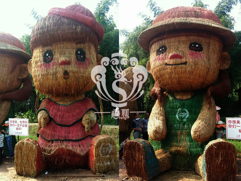 現在的精致稻草人藝術通常是由專業美術老師的造型放樣,然后由焊工師傅焊接出立體造型造型,然后以稻草或者稻草繩為材料編捆制作而成。