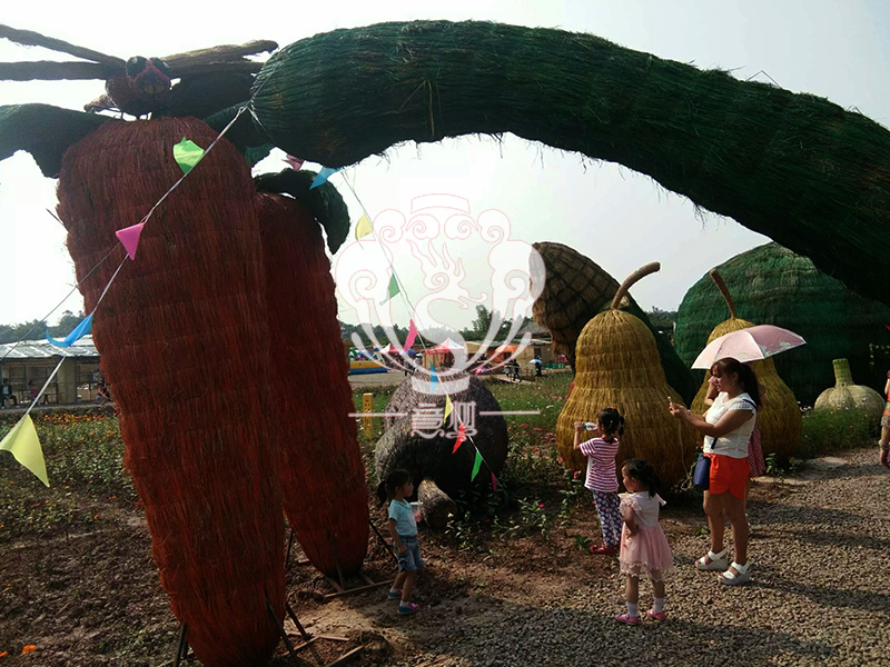 現在的精致稻草人藝術通常是由專業美術老師的造型放樣,然后由焊工師傅焊接出立體造型造型,然后以稻草或者稻草繩為材料編捆制作而成。