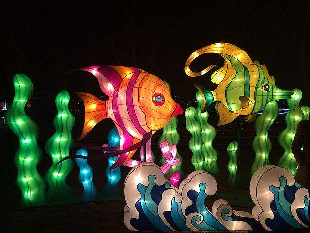 花燈,又叫彩燈,是我國各地普遍流行的裝飾性的傳統(tǒng)工藝品。花燈藝術是燈的裝飾藝術,是人們利用竹木、金屬、綾絹、綢緞、明珠、玉佩、絲穗、紙品、獸角、玻璃、羽毛、貝殼、麥稈、塑料等材料,根據(jù)形式美得法則或各地審美習慣、審美意識并綜合彩扎、裱糊、編結、刺繡、雕刻輔以剪紙,書畫等造型技藝設計制作的具有光亮的彩燈藝術。平日可用它烘托婚壽喜慶氣氛,到元宵燈節(jié),它便是人們觀賞、娛樂、競技、競藝的佳品。