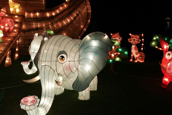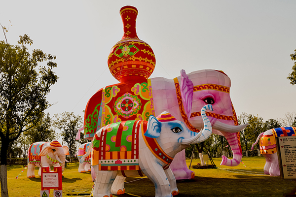 安裝好的大象的燈組,在這陽光明媚的時光下顯得格外祥和。